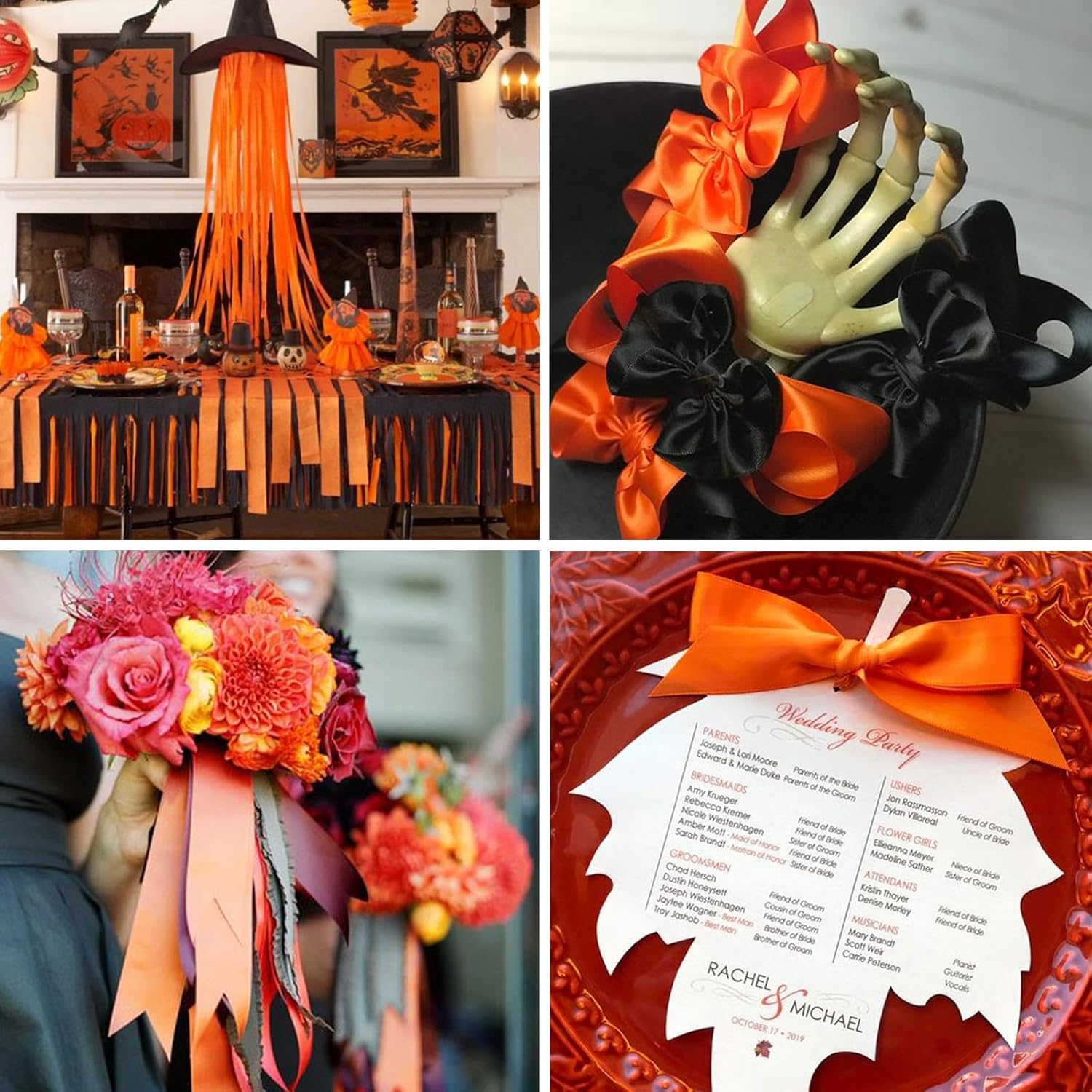1" x 50 Yards Autumn Orange Satin Ribbon Single Faced Fabric Ribbons for Gift Wrapping, Crafting, Bows Making, Flower Bouquet, Wedding, Home Decor