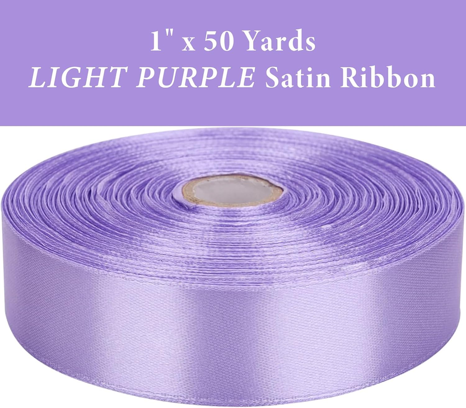 1" x 50 Yards Light Purple Satin Ribbon Single Faced Fabric Ribbons for Gift Wrapping, Crafting, Bows Making, Flower Bouquet, Wedding, Home Decor