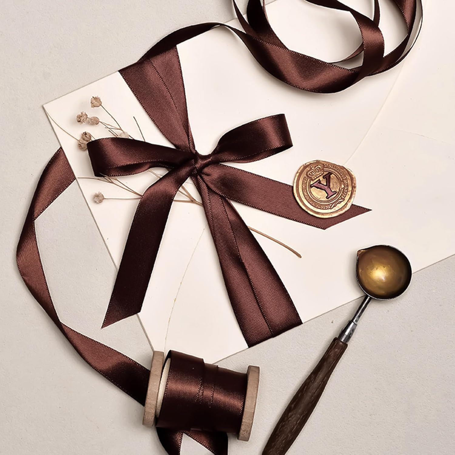 1" x 50 Yards Brown Satin Ribbon Single Faced Fabric Ribbons for Gift Wrapping, Crafting, Bows Making, Flower Bouquet, Wedding, Home Decor