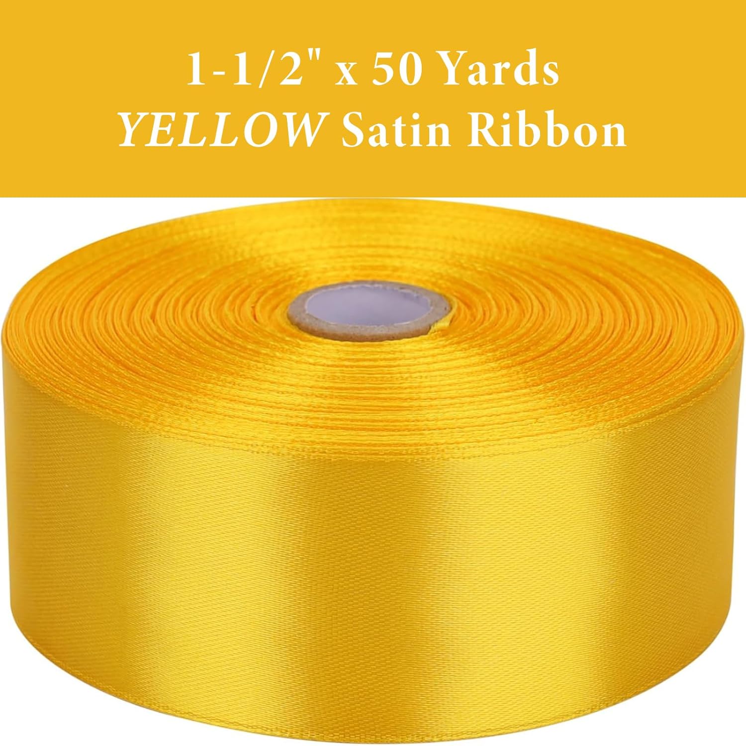 1-1/2" x 50 Yards Yellow Satin Ribbon Single Faced Fabric Ribbons for Gift Wrapping, Crafting, Floral Arrangements, Flower Bouquet, Wedding, Home Decor