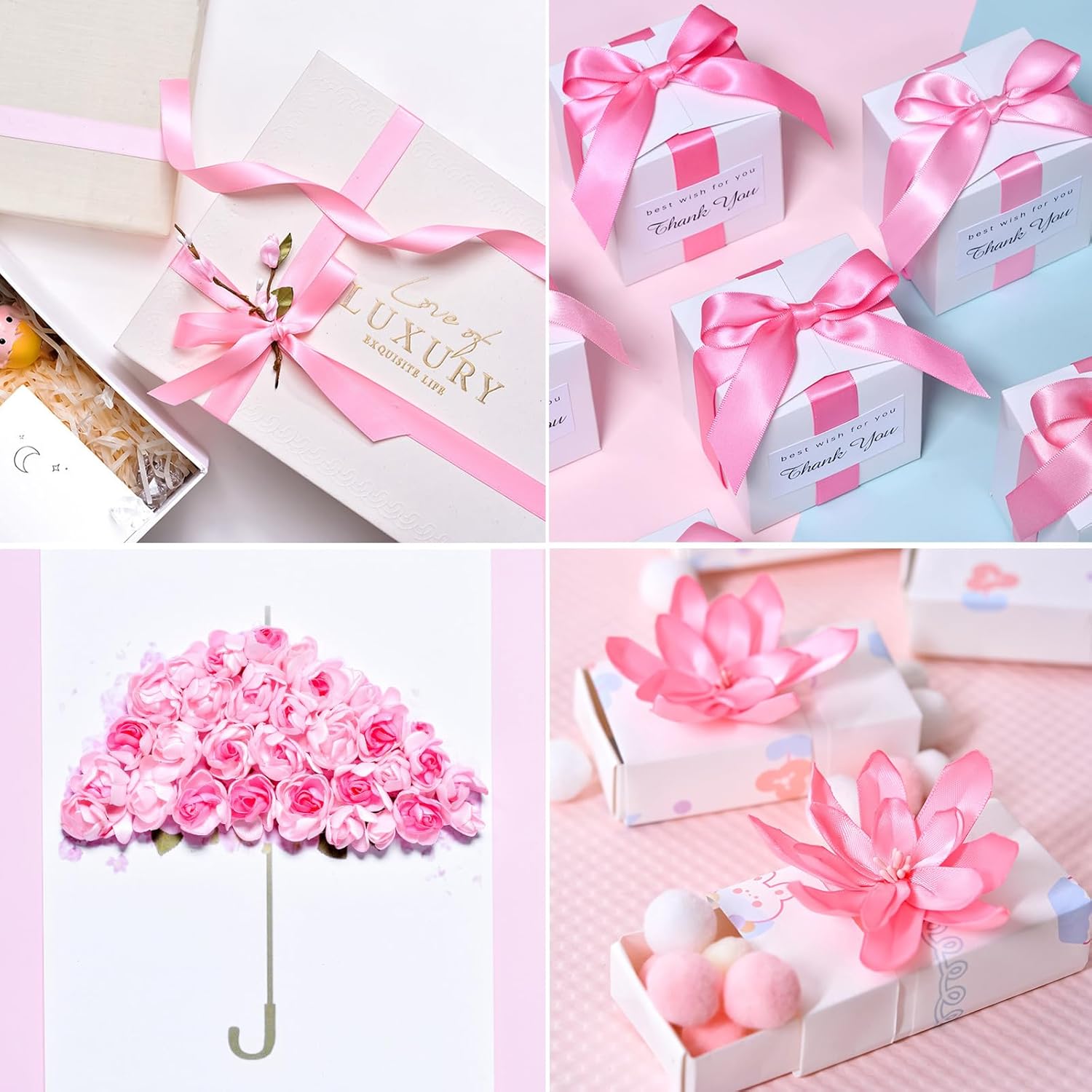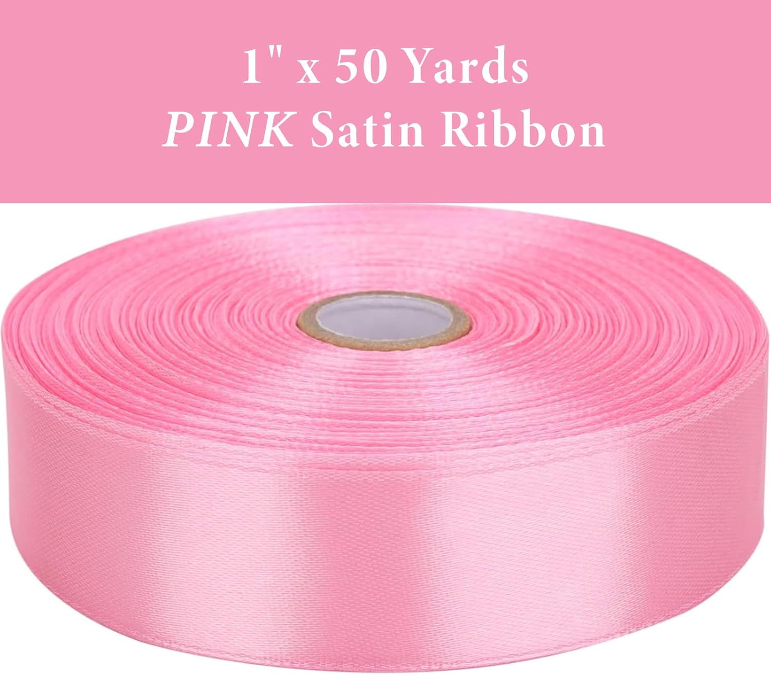 1" x 50 Yards Pink Satin Ribbon Single Faced Fabric Ribbons for Gift Wrapping, Crafting, Bows Making, Flower Bouquet, Wedding, Home Decor