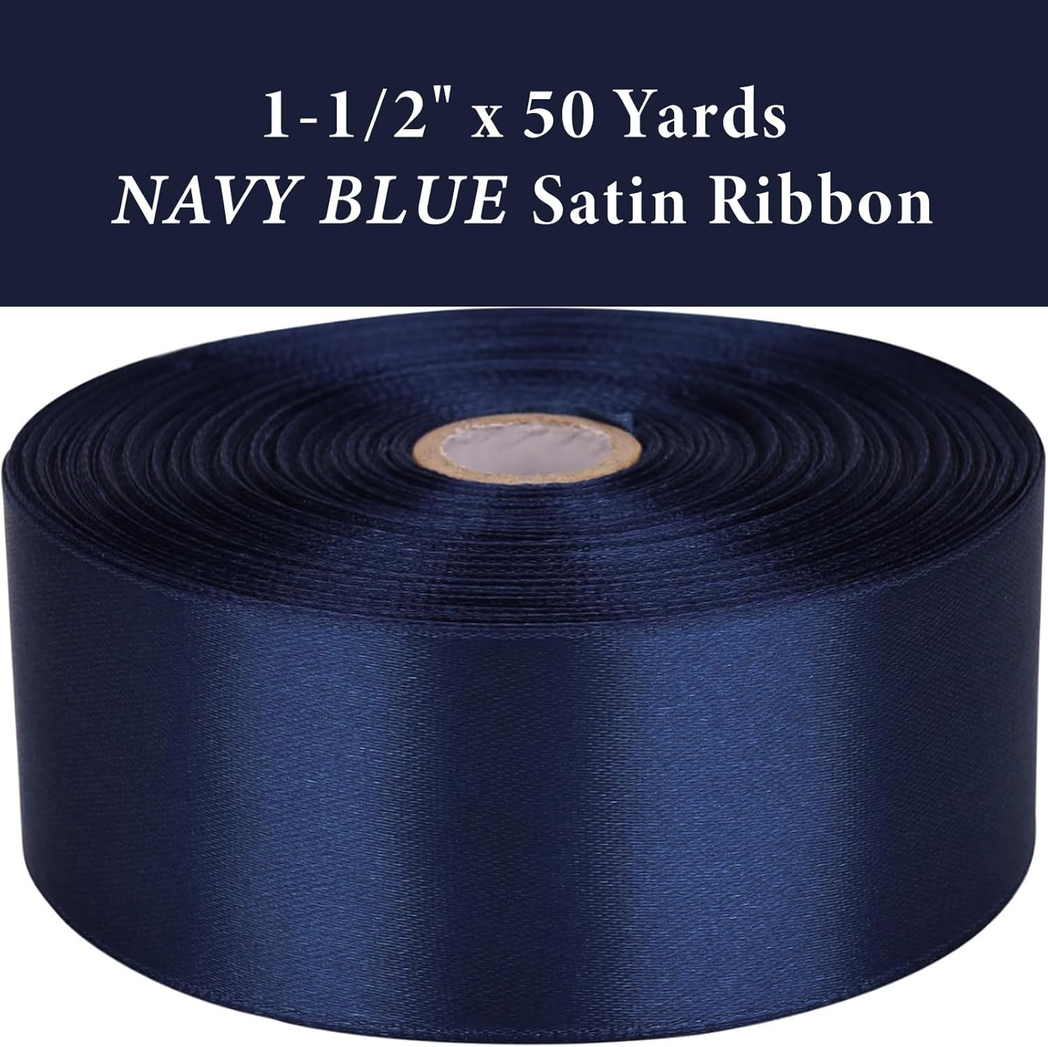 1-1/2" x 50 Yards Navy Blue Satin Ribbon Single Faced Fabric Ribbons for Gift Wrapping, Crafting, Floral Arrangements, Flower Bouquet, Wedding, Home Decor