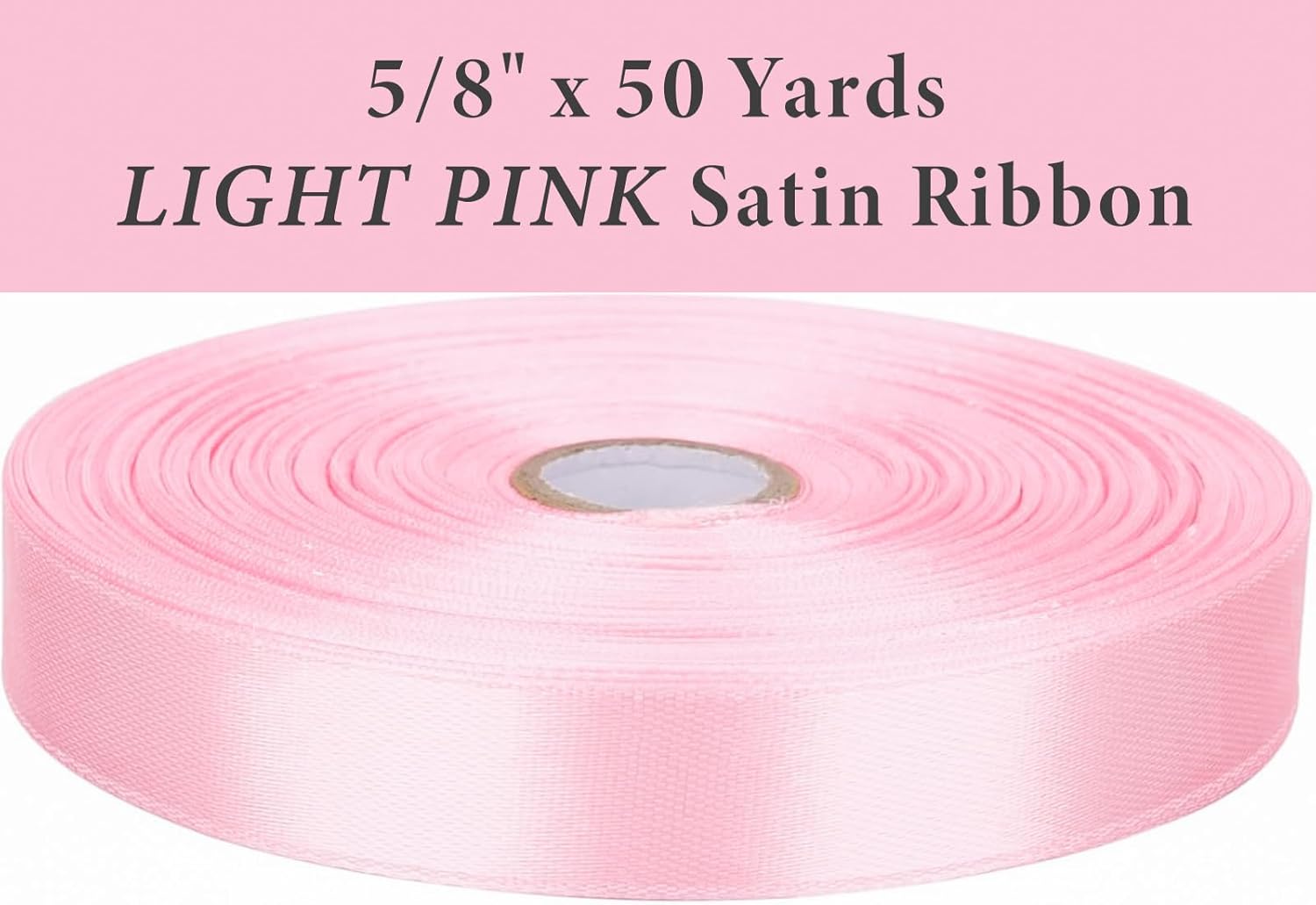 5/8" x 50 Yards Light Pink Satin Ribbon Single Faced Fabric Ribbons for Gift Wrapping, Crafting, Bows Making, Sewing, Wedding, Home Decor