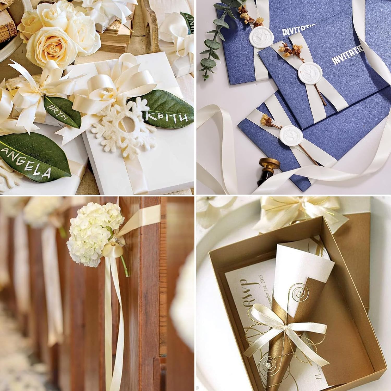 1-1/2 Inch Ivory Satin Ribbon 50 Yards Solid Fabric Ribbons for Gift Wrapping, Crafts, Floral Arrangements, Wedding, Party, Holiday and Home Decor