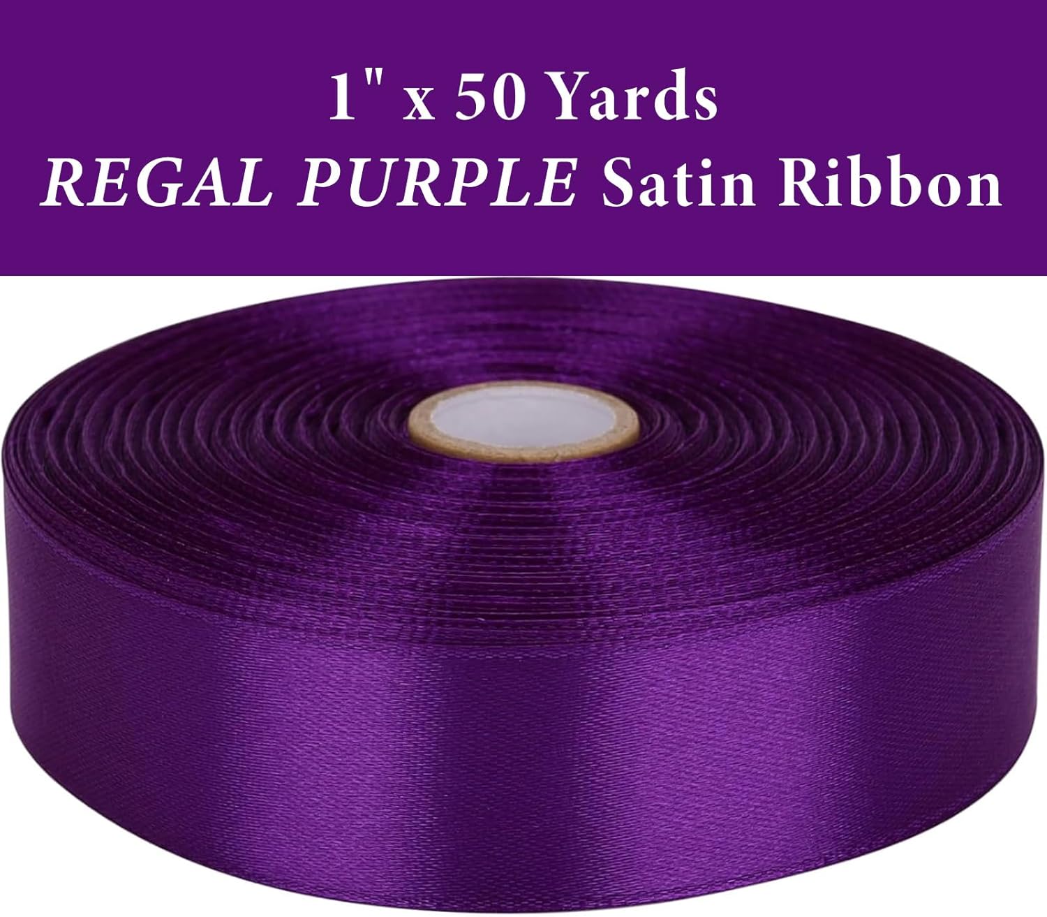 1 Inch Regal Purple Satin Ribbon 50 Yards Solid Fabric Ribbons for Gift Wrapping, Crafts, Floral Arrangements, Wedding, Party, Holiday Decor