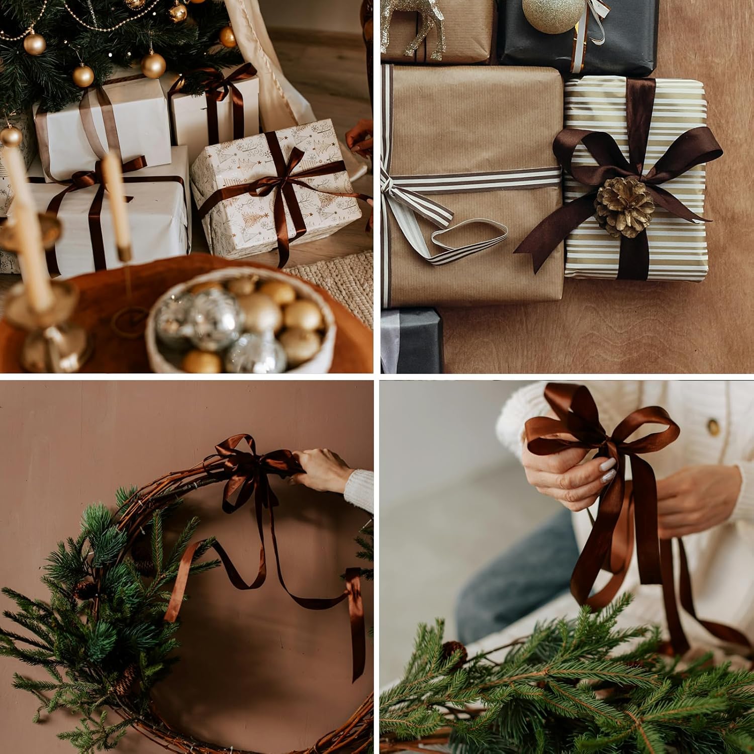 1 Inch Brown Satin Ribbon 50 Yards Solid Fabric Ribbons for Gift Wrapping, Crafts, Floral Arrangements, Wedding, Party, Holiday Decor