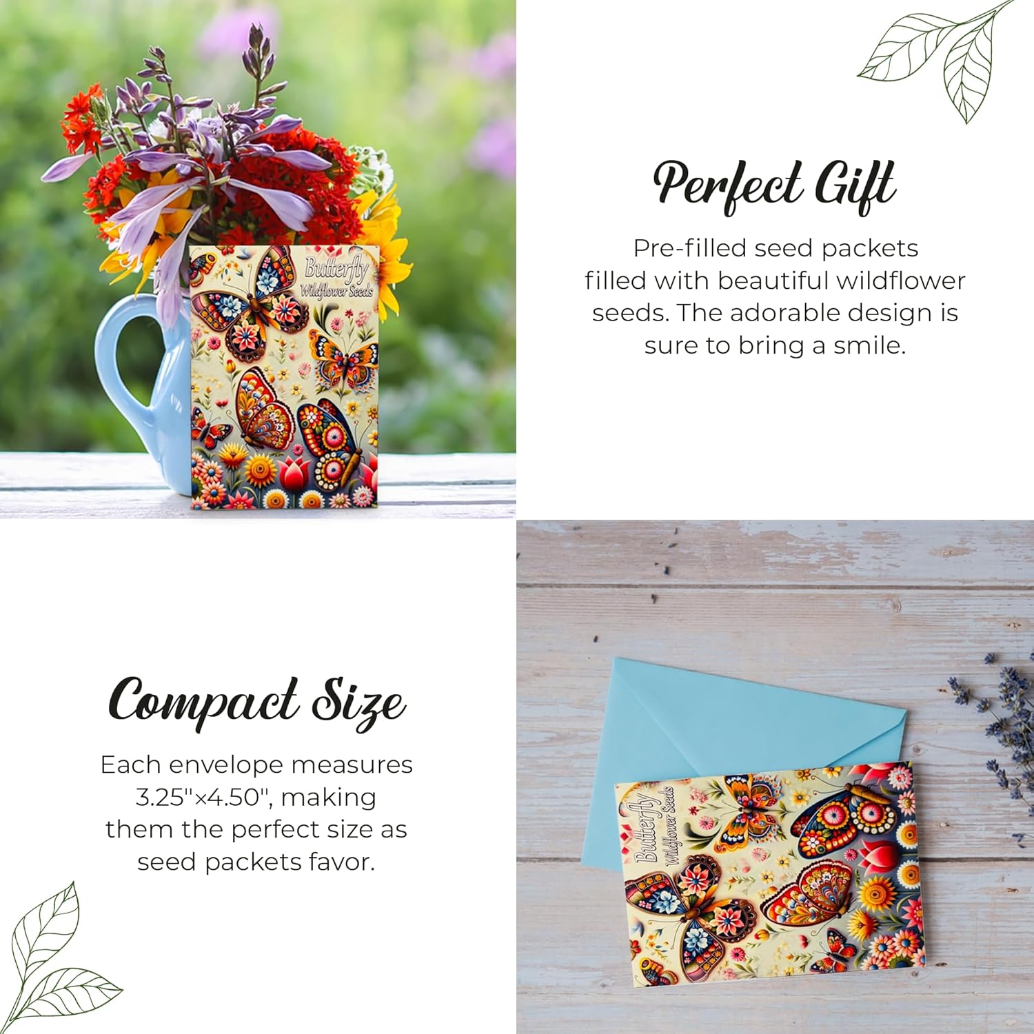 - LIGHTWEIGHT WILDFLOWER MIX SEED PACKETS: These Humming Birds, Butterflies and Bees-friendly wildflower seed packets measure a compact 3.25" wide x 4.50" high, both sturdy and lightweight Weighing only 2.39 ounces. The sharp glossy laminate not only catches the eyes of your guests but also ensures durability. Made for great table centerpieces or decorations, adding charm to any event or theme