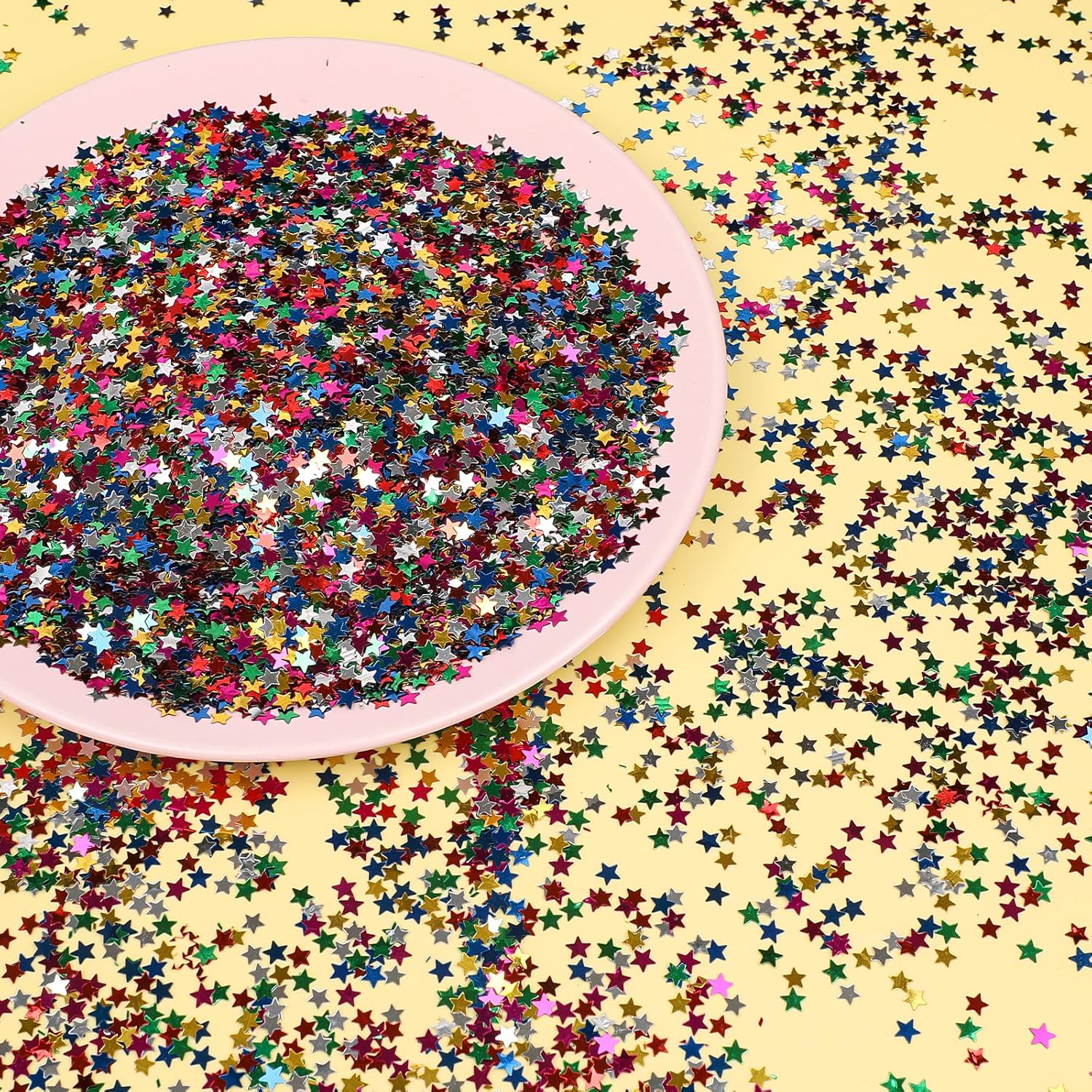 - Ideal Gift - The 6mm mini size is perfect—not too big or small to feel mismatched or hard to handle. At 150g per pack, it’s enough for party decor, gift packaging, and more across scenarios. This star-shaped glitter confetti will definitely impress your friends with its decorative effect