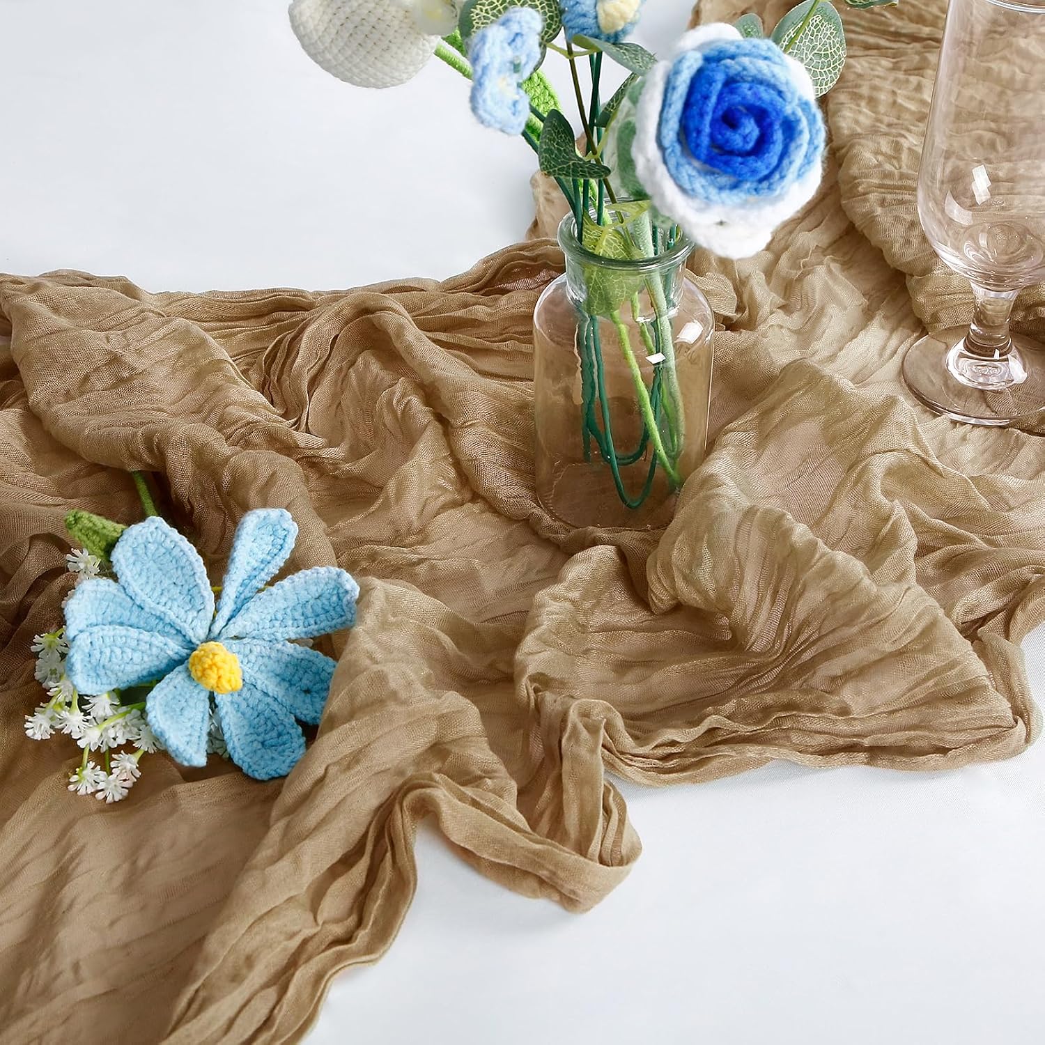 - 💖 【Premium & Breathable Material】 Crafted from high-quality polyester gauze, our table runners are ultra-soft, lightweight, and skin-friendly with delicate frayed edges for a rustic charm. The dusty pink hue cheese cloth table runner adds a romantic touch, while the crinkled texture cheesecloth ensures elegant draping for any table setting.