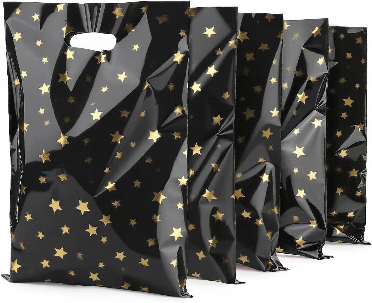 - Colorful Design: The plastic party gift bag is printed with golden stars and soft color design, making it a joyful party item for children's birthdays, baby showers, Christmas, New Year, and graduation ceremonies