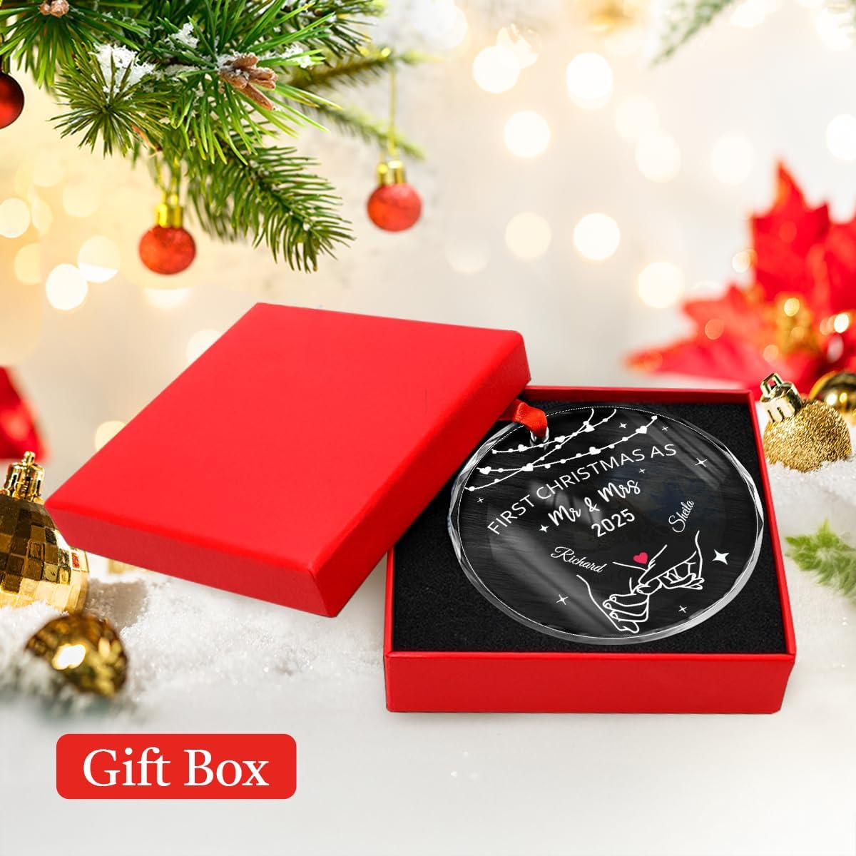 Personalized Christmas Ornaments with Names, Couple Glass Ornament, Custom Wedding Gifts for Couples 2025, Wedding Gift Ideas for Newly Wed Couple, Bride, Bridal Shower, Future Mr & Mrs (C5)