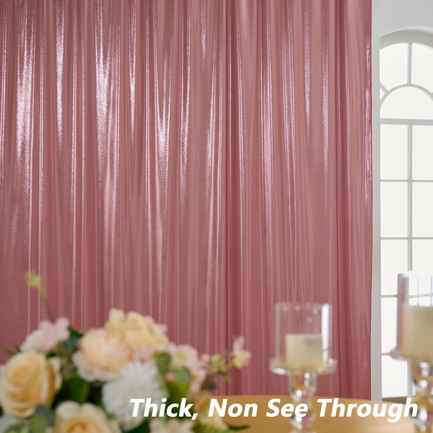 - Versatile Rose Gold Shimmer Curtains- The 10ft tall champagne shimmer wall backdrop are perfect for kinds of occassions. such as: wedding,parties,bridal and baby shower,candy buffets,stage backdrop, photo backdrop for photography, birthday theme party backdrop, photobooth, photoshoot,reception background, graduation, ceremony, home decoration and more drapes for backdrops with ballon, flowers, lights, banners decorations.