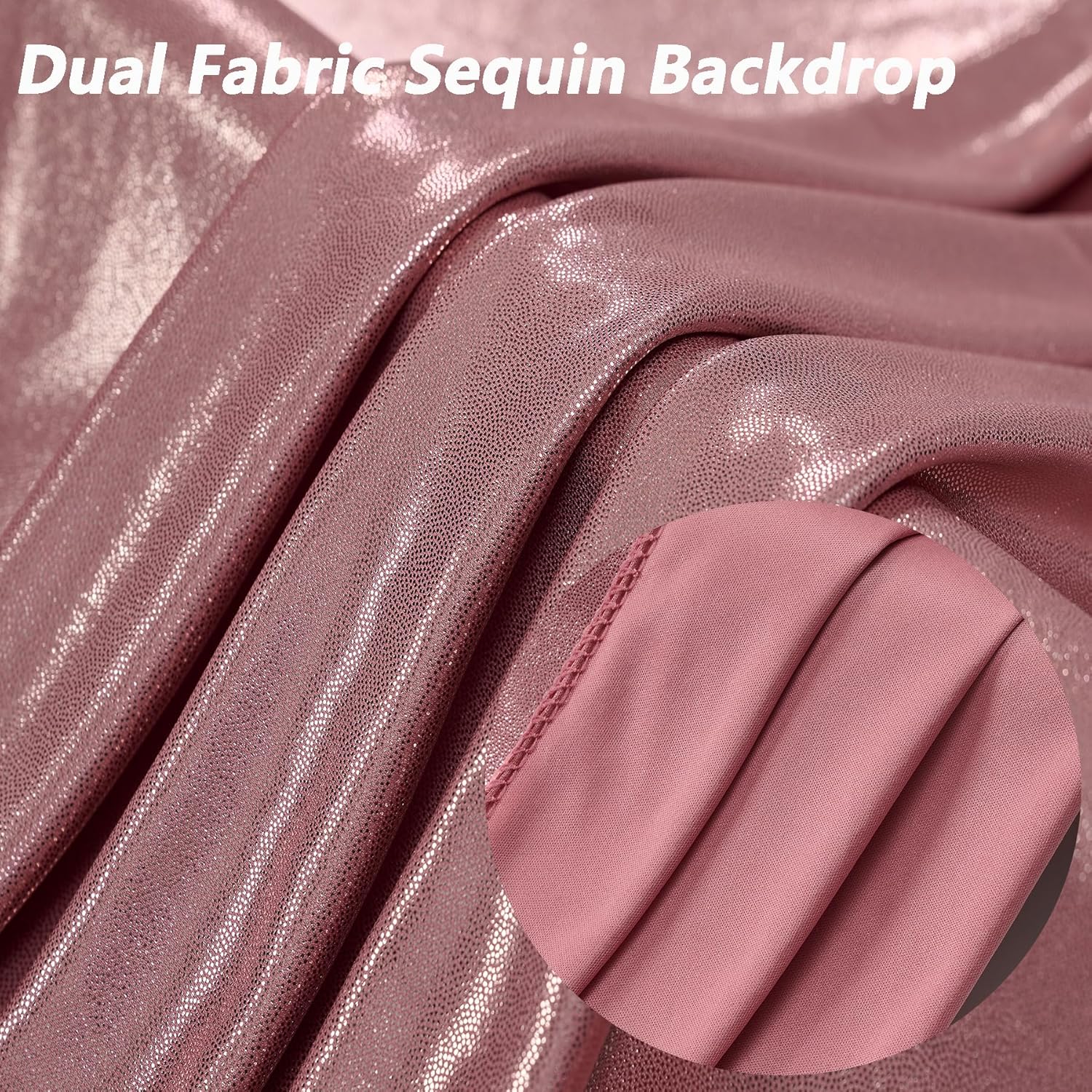 - Wrinkle Free & Non See Through Rose Gold Drapes for Backdrop - Made of premium polyester fabric as the backing, wrinkle free, Silky Touch Feeling, Drape Nicely; Dual Design make the rose gold drapes for backdrop 10 ft not see through at all, perfect for any events rose gold sequin drapes