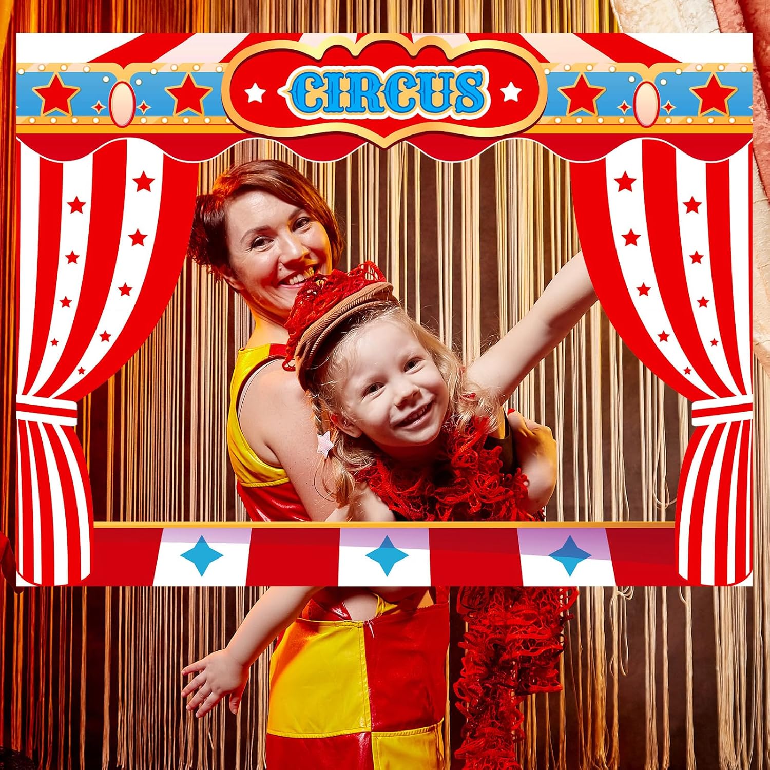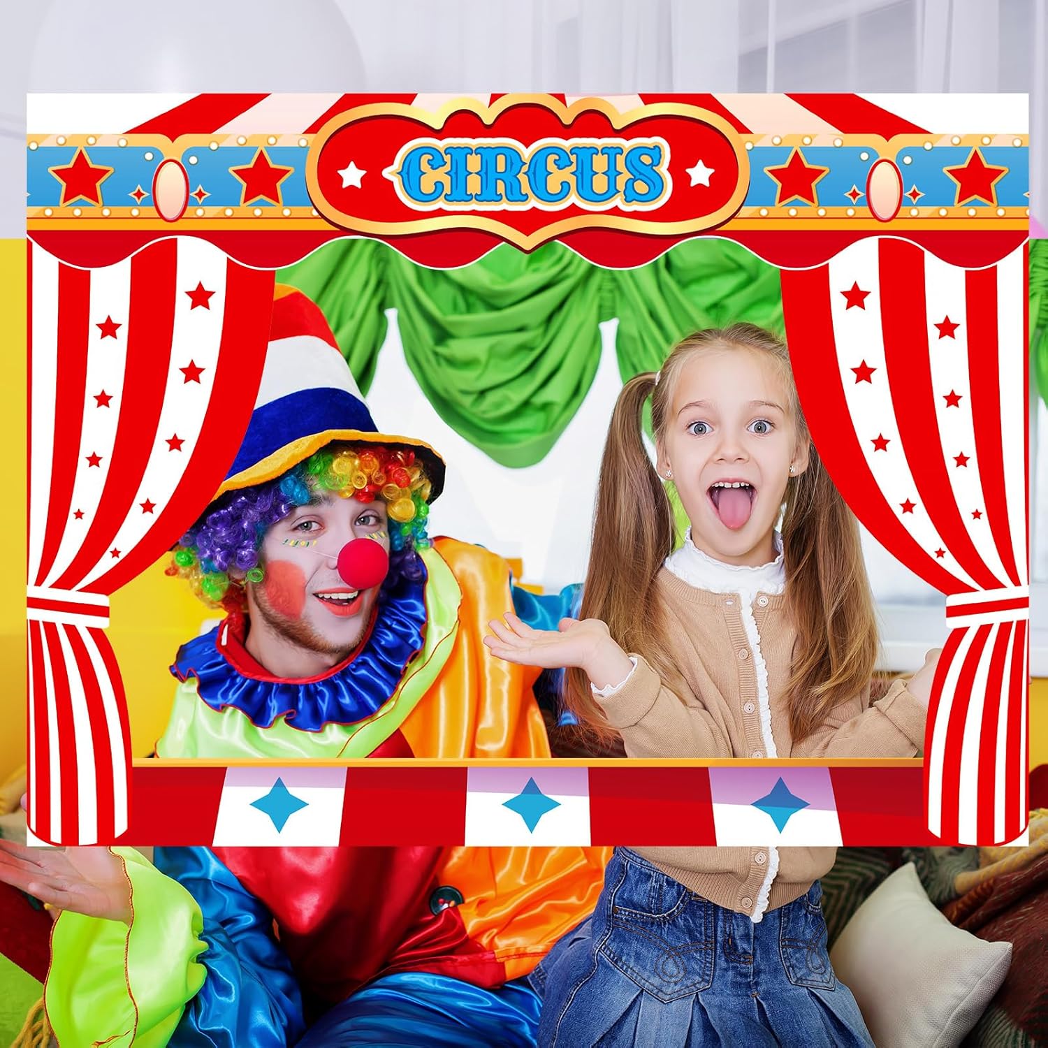 Upgraded 32 x 24 Inch Large Carnival Circus Photo Booth Props Party Decorations Picture Frame Vintage Photo Frame Friends Selfie Props for Christmas Mexico Favors (Carnival Style)