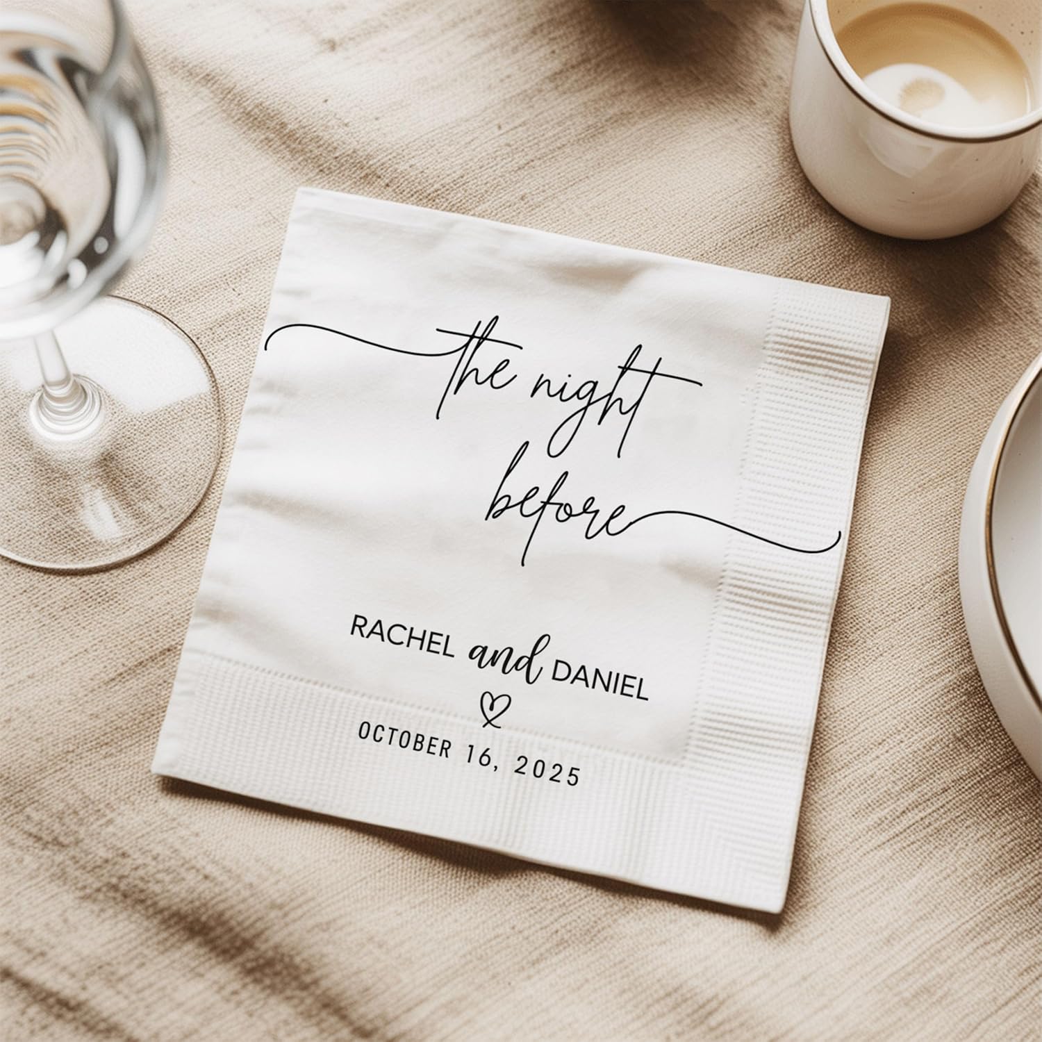 - Versatile Use Beyond the Wedding Day: In addition to weddings, these napkins can be used for engagement parties, bridal showers, anniversaries, or vow renewals. Their personalized nature makes them versatile for any romantic milestone worth celebrating with elegant, coordinated details.
