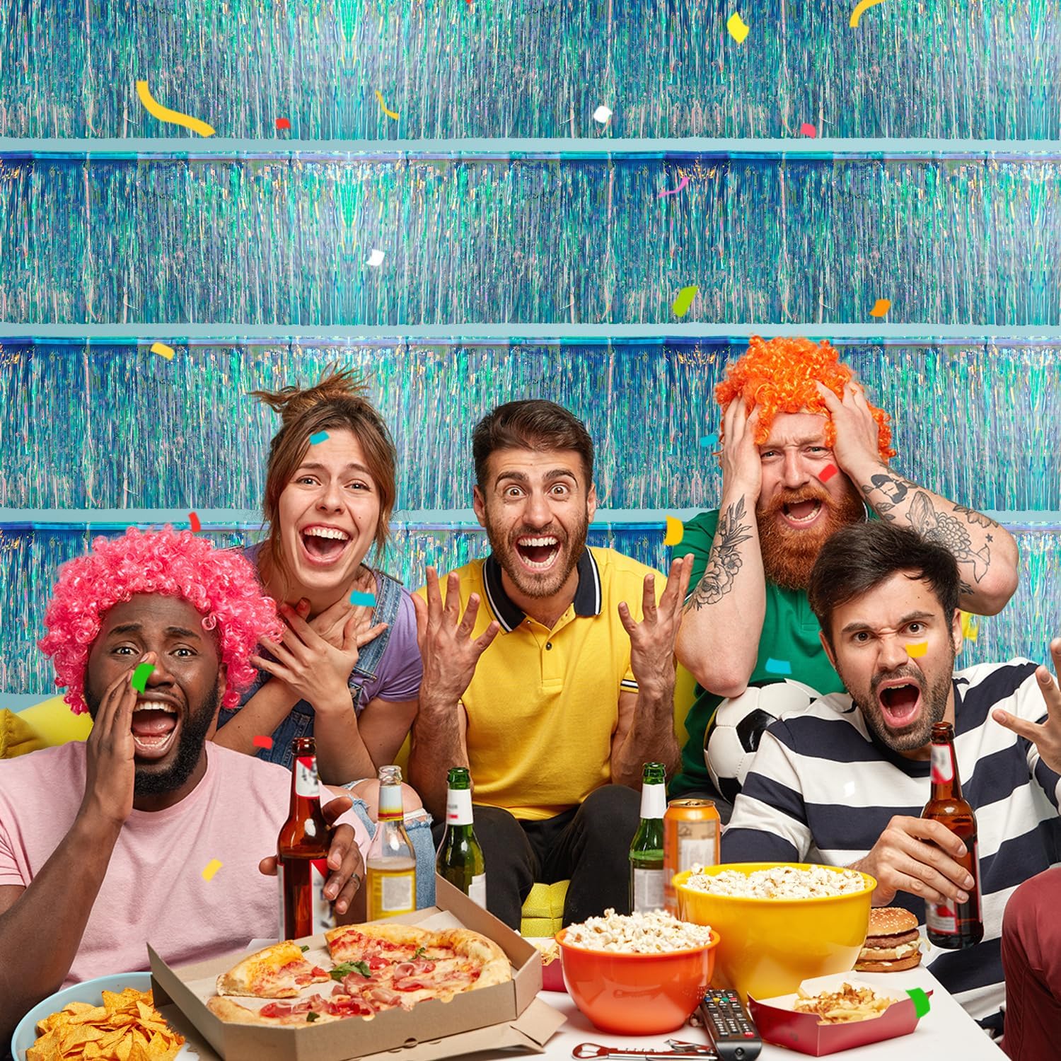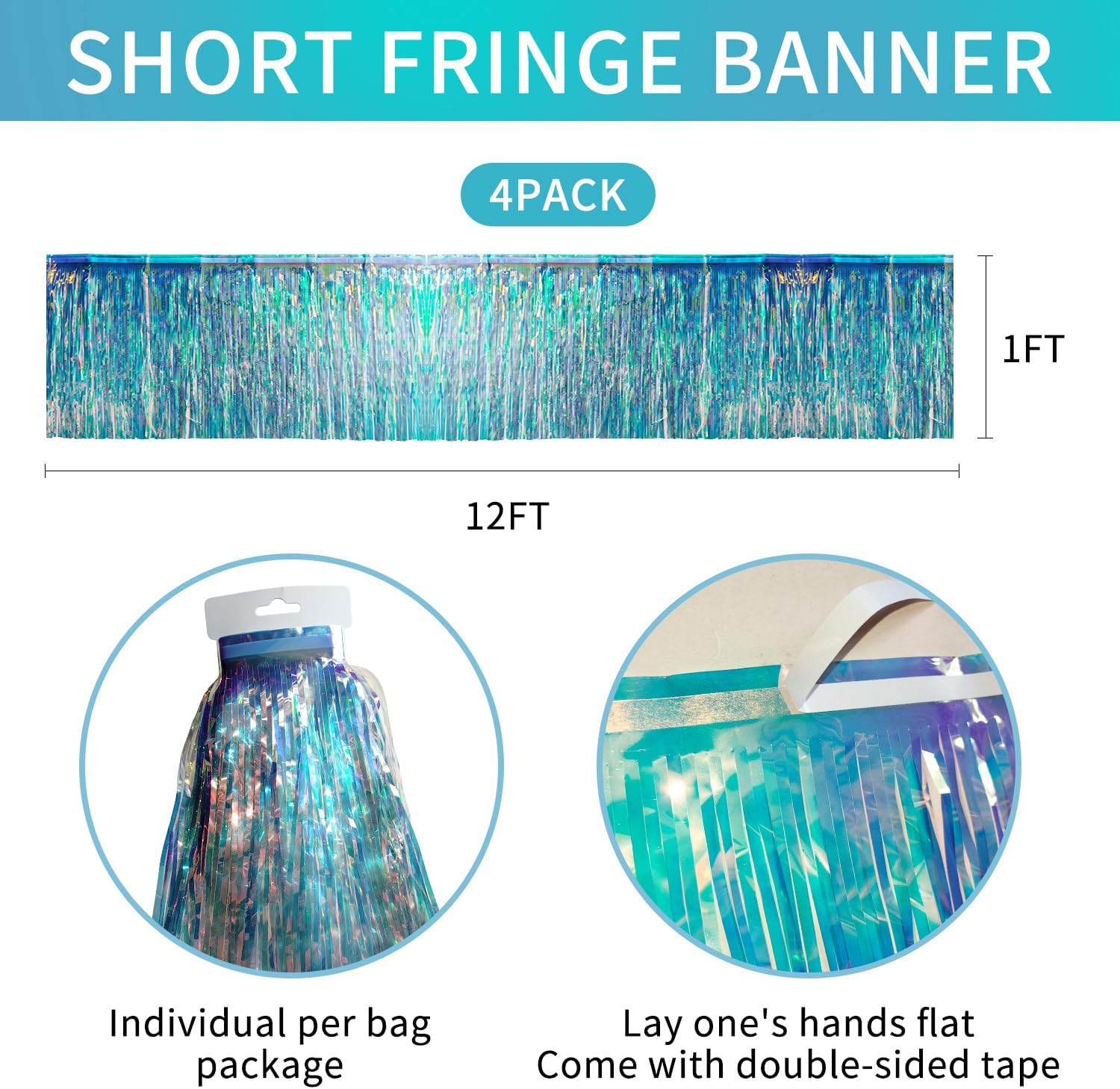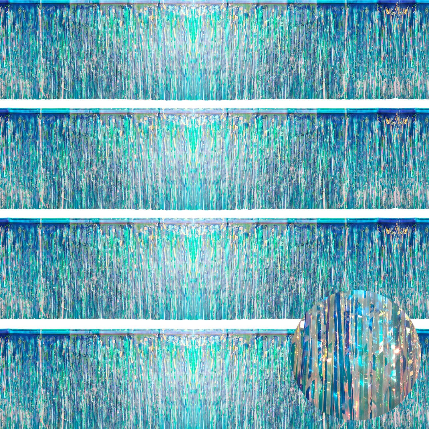 Iridescent Birthday Decorations Tinsel Garland Parade Float Decorations for Trailer 4Pack 12FT Christmas Party Decor Ceiling Fringe Banner Silver Backdrop for Streamers Party Decorations