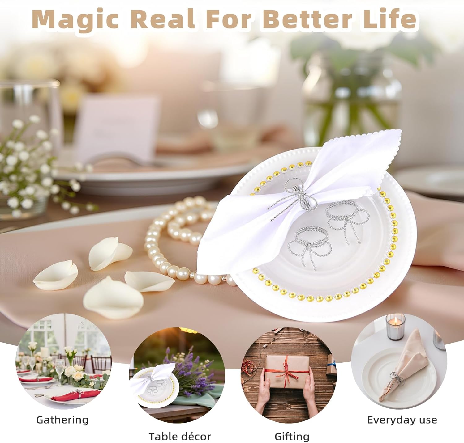 - HANDMADE BOW TIE NAPKIN RINGS: This silver napkin ring set contains 12 pcs metal napkin ring holders, handcrafted by experienced artisans. The cute bowknot design looks exquisite, easily create a beautiful and attractive appearance for the napkin and flatware