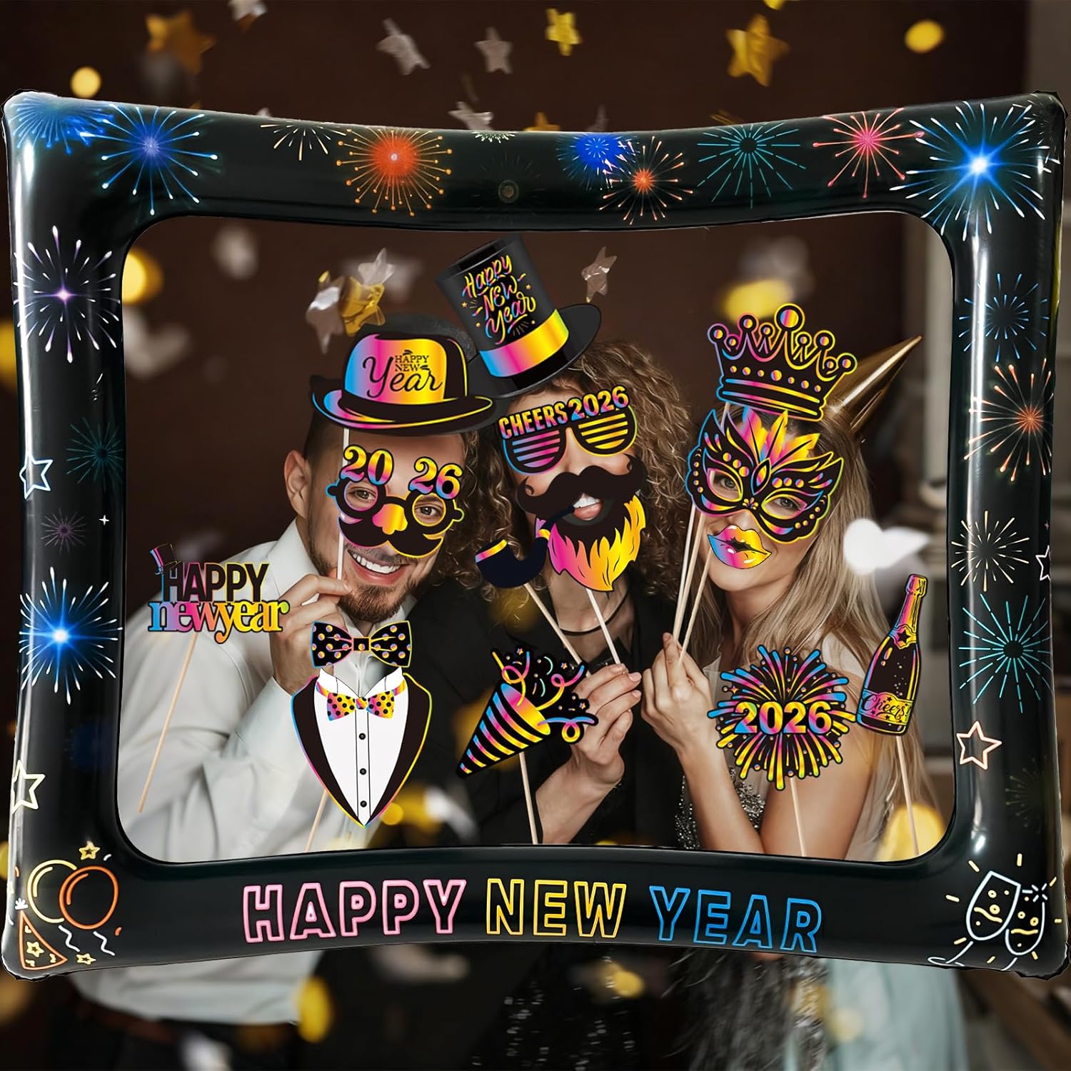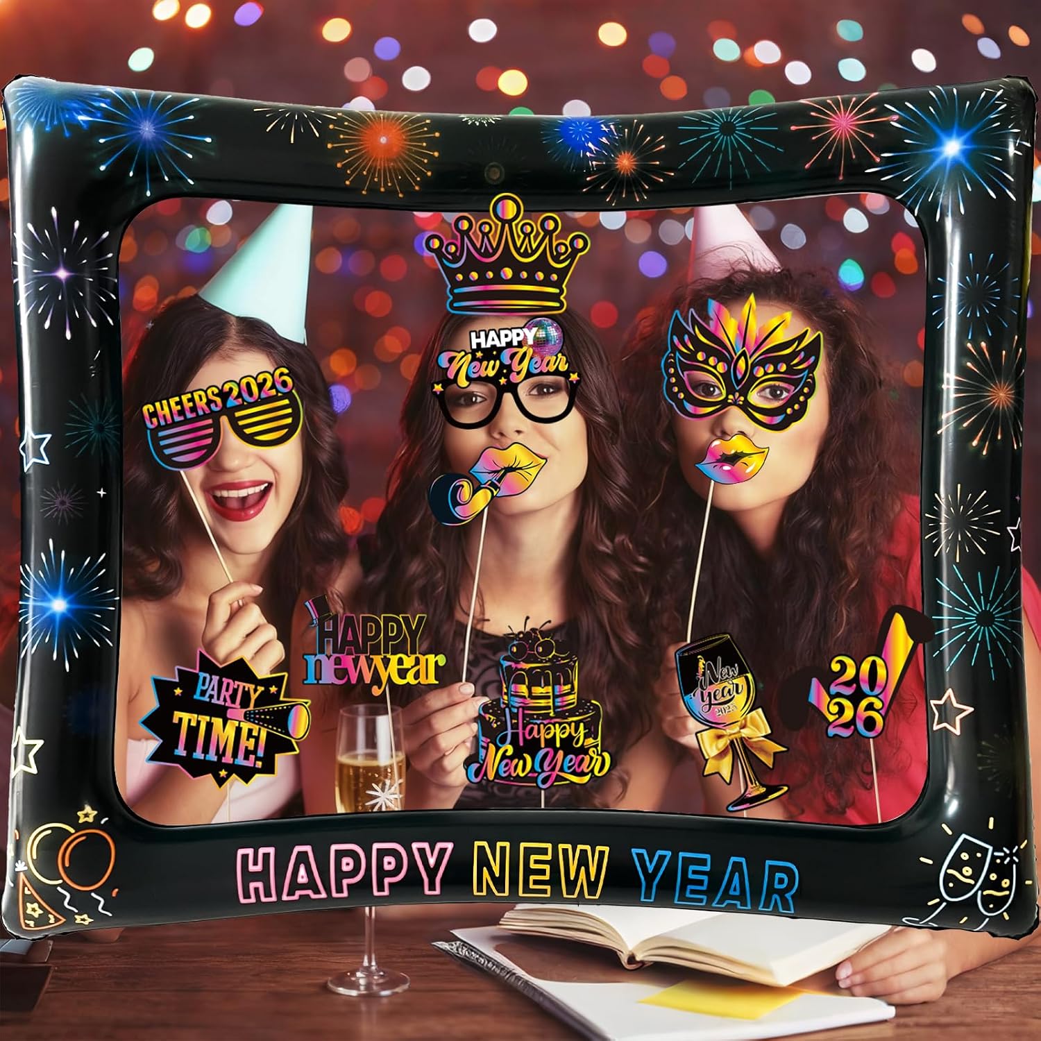 - PACKAGE INCLUDING: Including 1 large 2026 New Year inflatable photo frame and 30 pieces fun New Year photo booth props, we provide everything you need to take joyful holiday photos. The perfect combination of colorful New Year props is an elegant trend, and using these fashionable 2026 colorful photo booth props and frame will make your New Year photos fun and unique