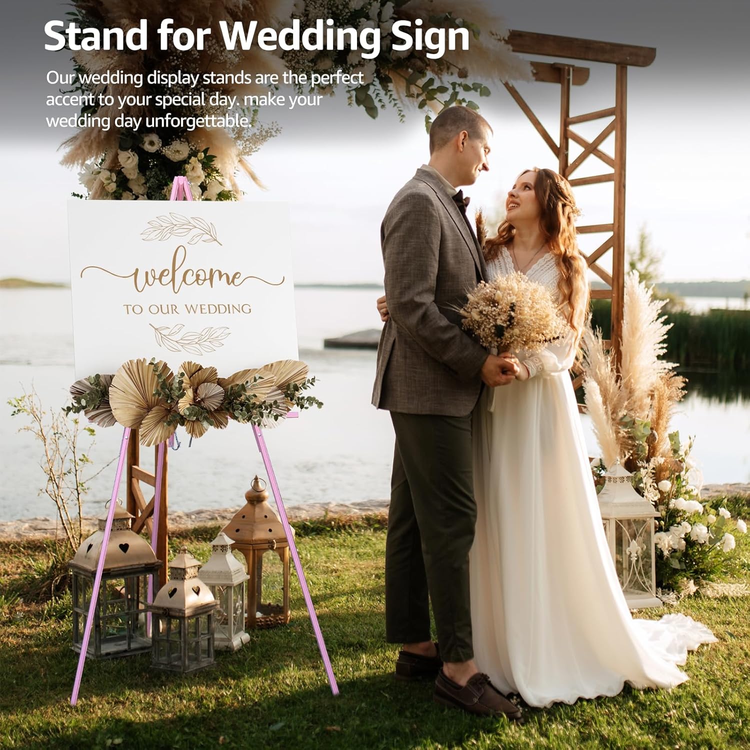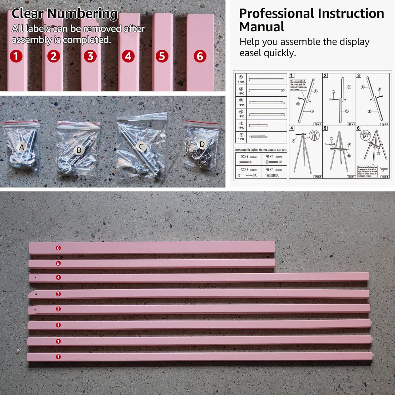 NianFeng Wooden Easel Stand for Sign, Easel Display Stand Floor for Wedding Sign with Adjustable Tray, 63-Inch, Tripod A-Frame Poster Light Duty, Welcome, Art Show & Baby Shower (Pink)