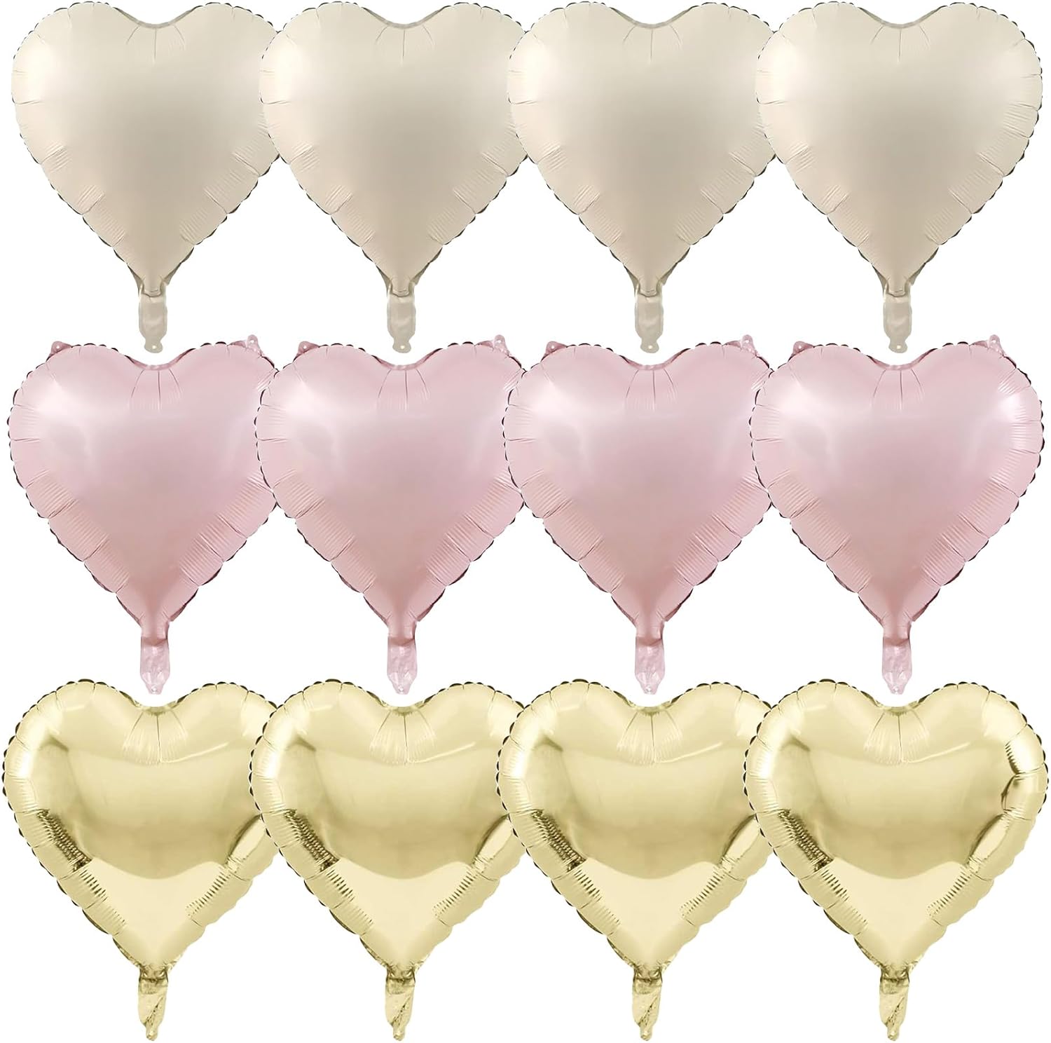 - Baby Pink Gold Foil Balloons: 12Pcs 18 inch foil balloons. Included 4pcs light pink heart balloons, 4pcs pastel gold heart balloons, 4pcs cream heart balloons, ribbons and straw. Hearts foil balloons are the optimal choice for any party occasion