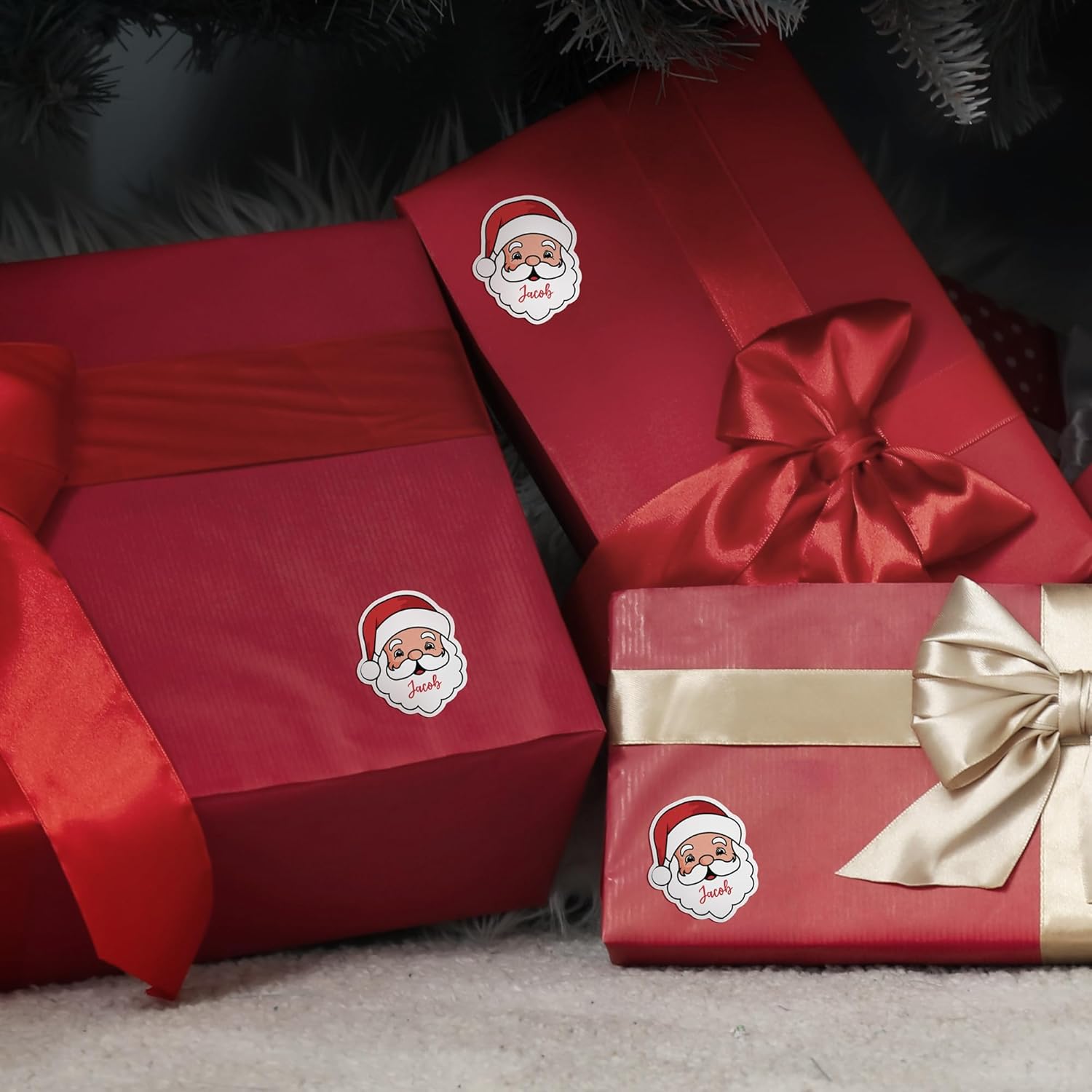 - PERSONALIZED CHRISTMAS STICKERS β Upload any name and we print it into colorful Santa Claus cartoon designs these personalized christmas stickers turn ordinary gift wrapping into bespoke holiday decor for family and friend