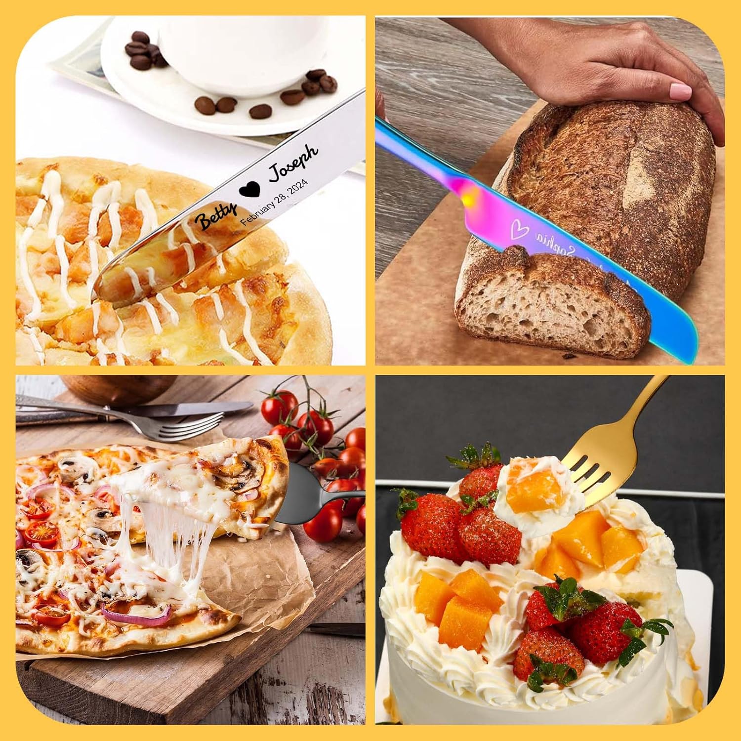 - Personalized Cake Server and Knife Set: Our Wedding Knife and Cake Server Set comes with 2 pieces, a cake knife, a cake server. It can be engraved with your names and date or your favorite symbol. The classic style and elegant engraved text will add unique romance and elegance to weddings, anniversaries or parties, creating wonderful memories.