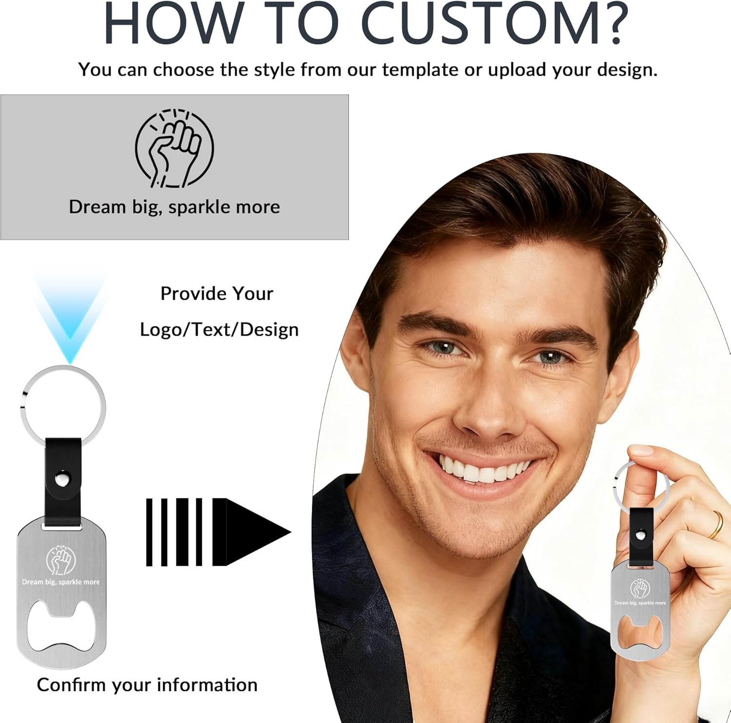 - COMPACT & PORTABLE: With its compact size and lightweight design, this personalized keychian bottle opener easily fits in your pocket, bag, or keyring. It’s a convenient tool to have on hand for impromptu drinks or everyday key organization.