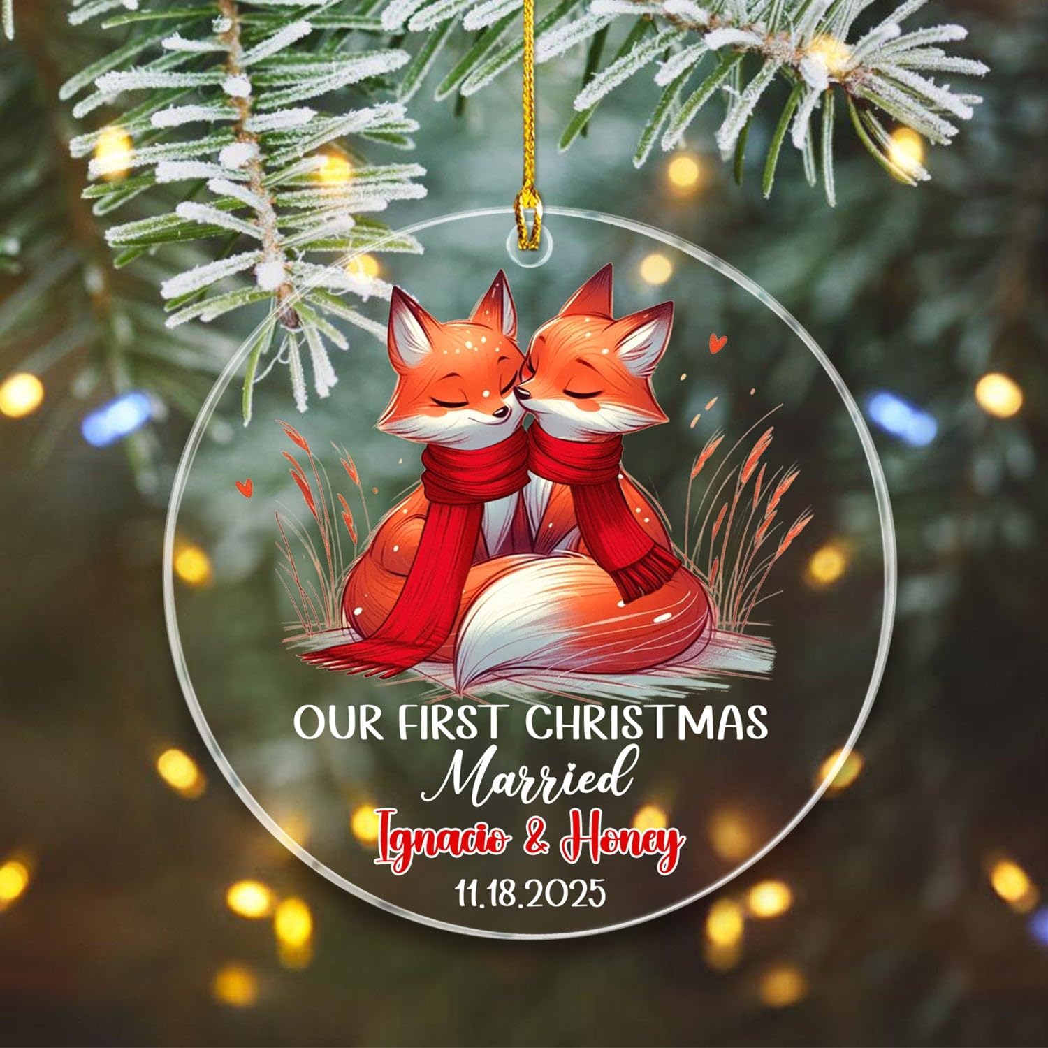 Personalized Date/Name Mr & Mrs Fox Married Christmas Ornament 2025, Our First Christmas Married Fox Ornaments Gift for Marriage, Customized Mr & Mrs Foxes Together Christmas Ornament for Newlyweds
