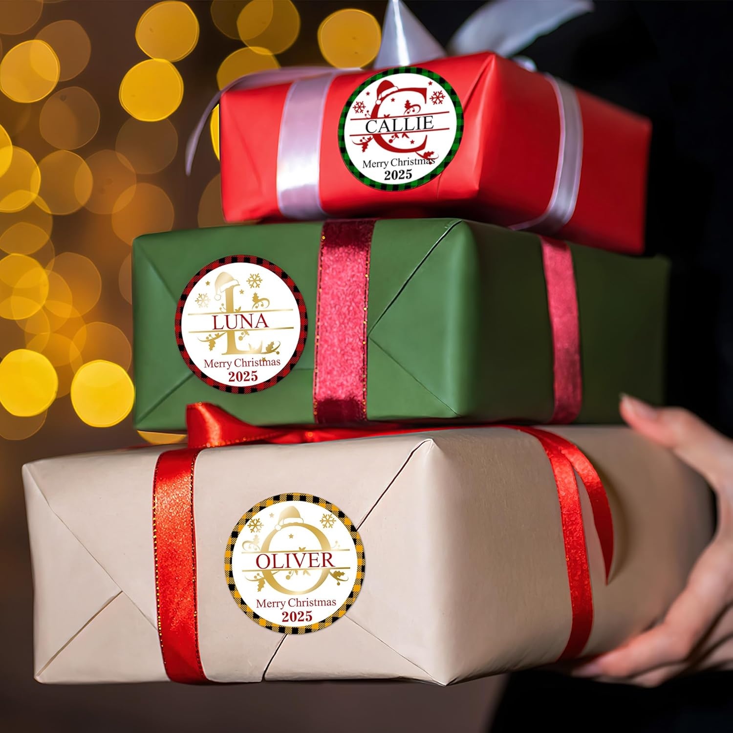CALLIE Personalized Christmas Stickers with Custom Name, Waterproof Custom Christmas Name Tags Stickers, Peel and Stick Christmas Gift Tags (Christmas Monogram)