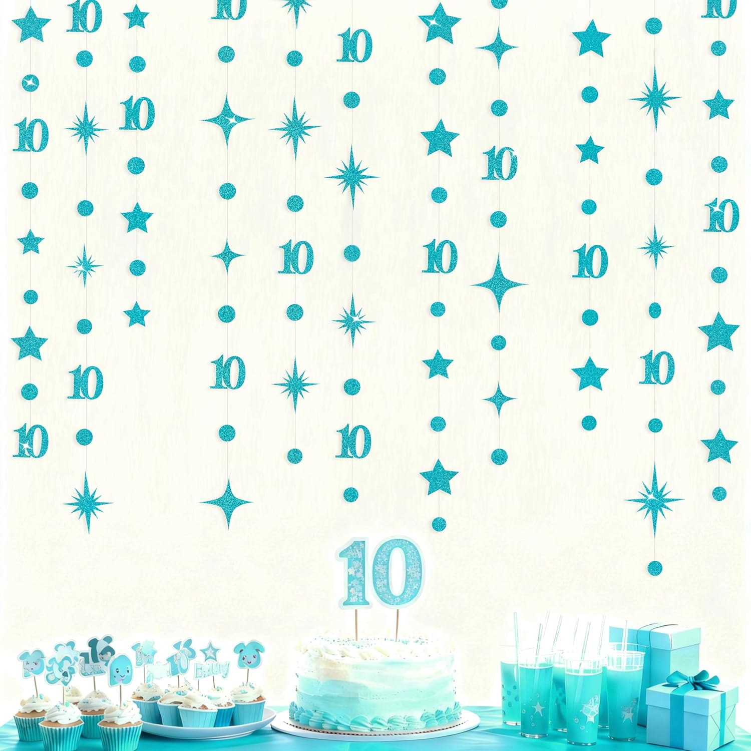 - 👍 Double digits party décor- our teal blue number 10 circle dot twinkle star garland kit is perfct for girls/boys 10th birthday party, 10 years old birthday decorations, 10 birthday decorations for girls, 10 birthday decorations for boys, double digits party, 10th anniversary, happy 10th birthday decorations, cheers to 10 years party, wedding, bridal shower, birthday, Christmas, barbecue, home, engagement, christenings, fetes, etc