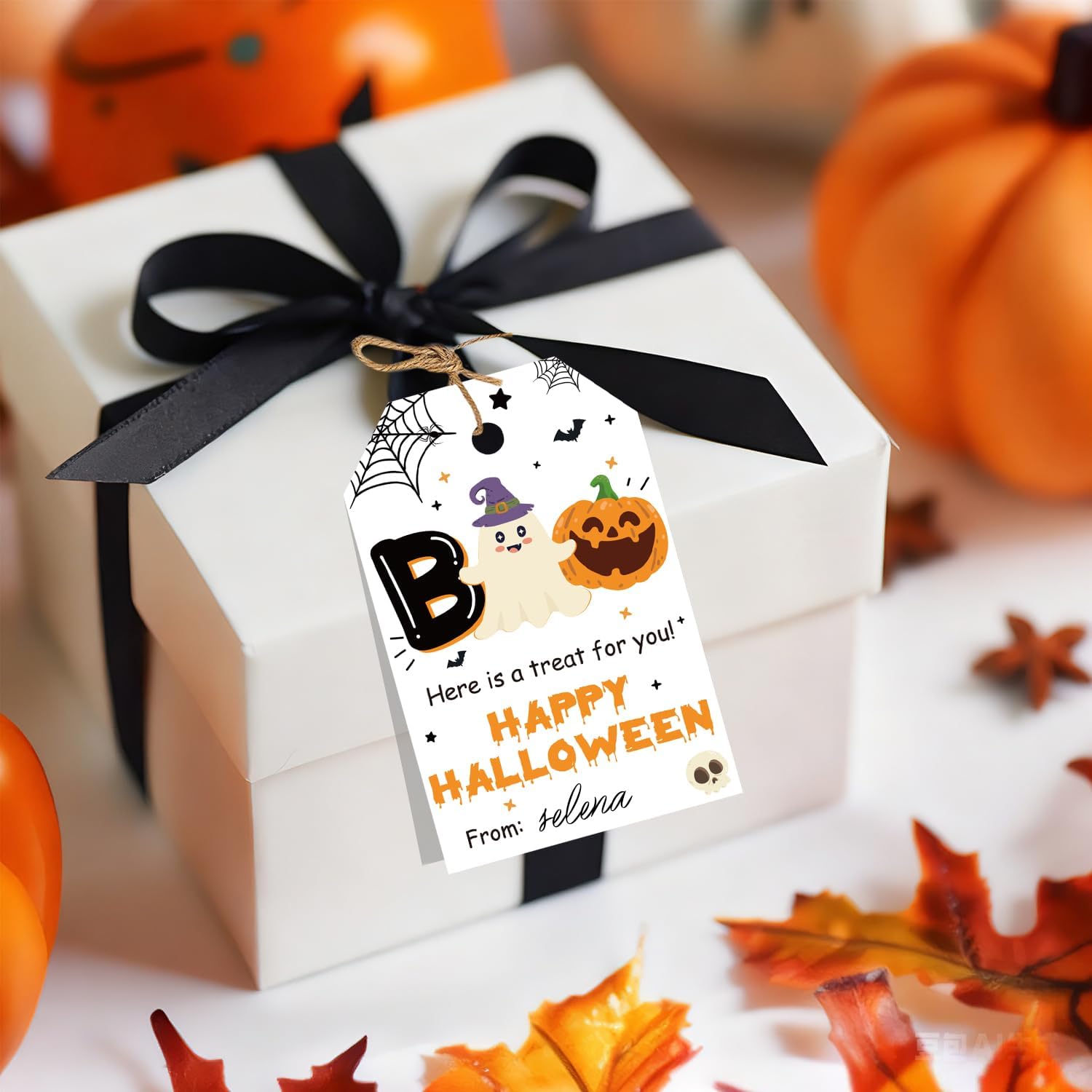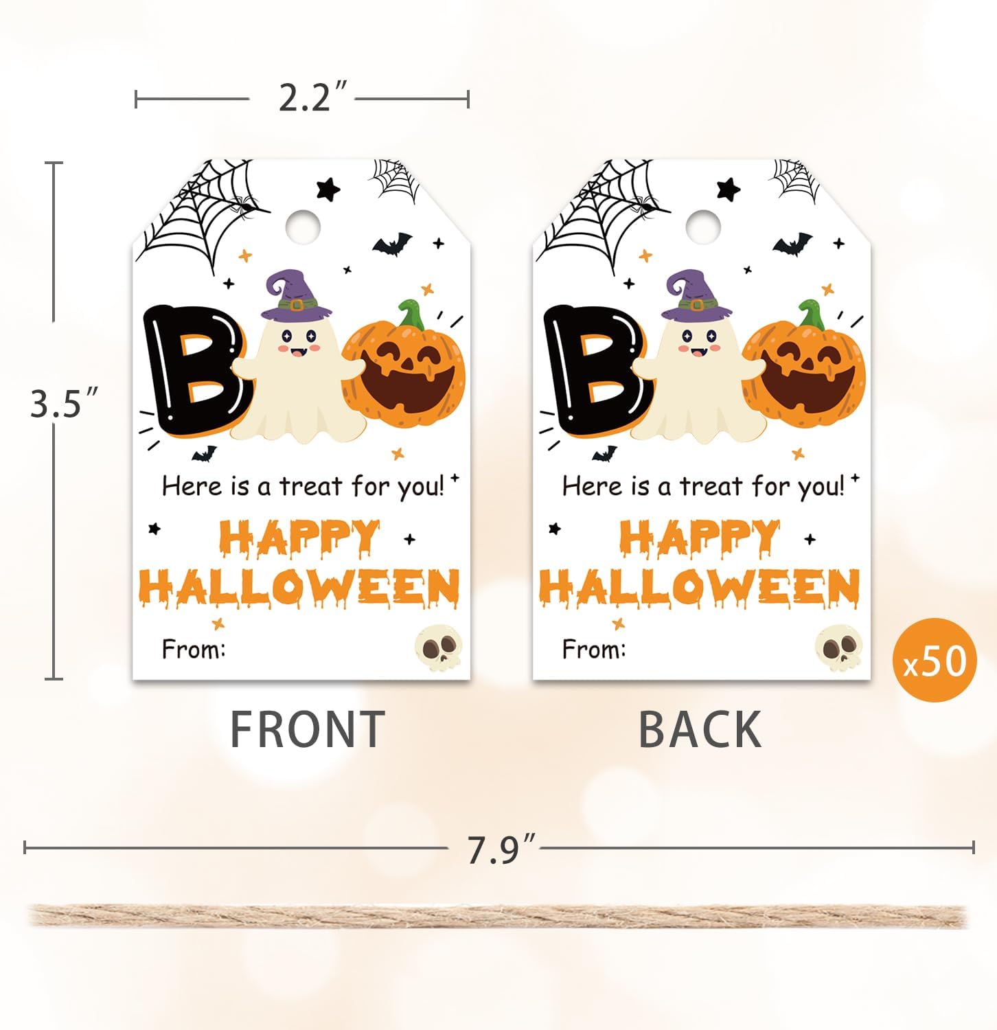 50pcs Boo Halloween Favor Tags, Halloween Class Gift Tags for Spooky Ghost Party Favor and Gift Wrapping Decoration (Happy)