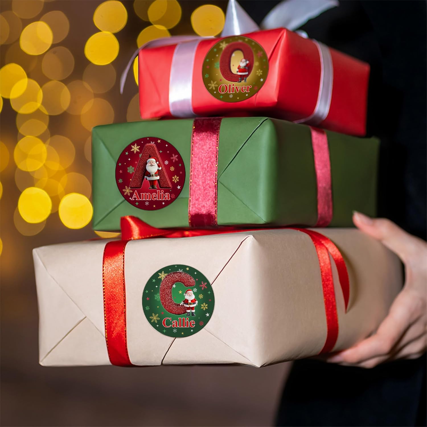 - PERSONALIZED CHRISTMAS STICKERS β Upload any name and we print it into colorful Christmas element designs. These personalized christmas stickers turn ordinary gift wrapping into bespoke holiday decor for family kids and friend.