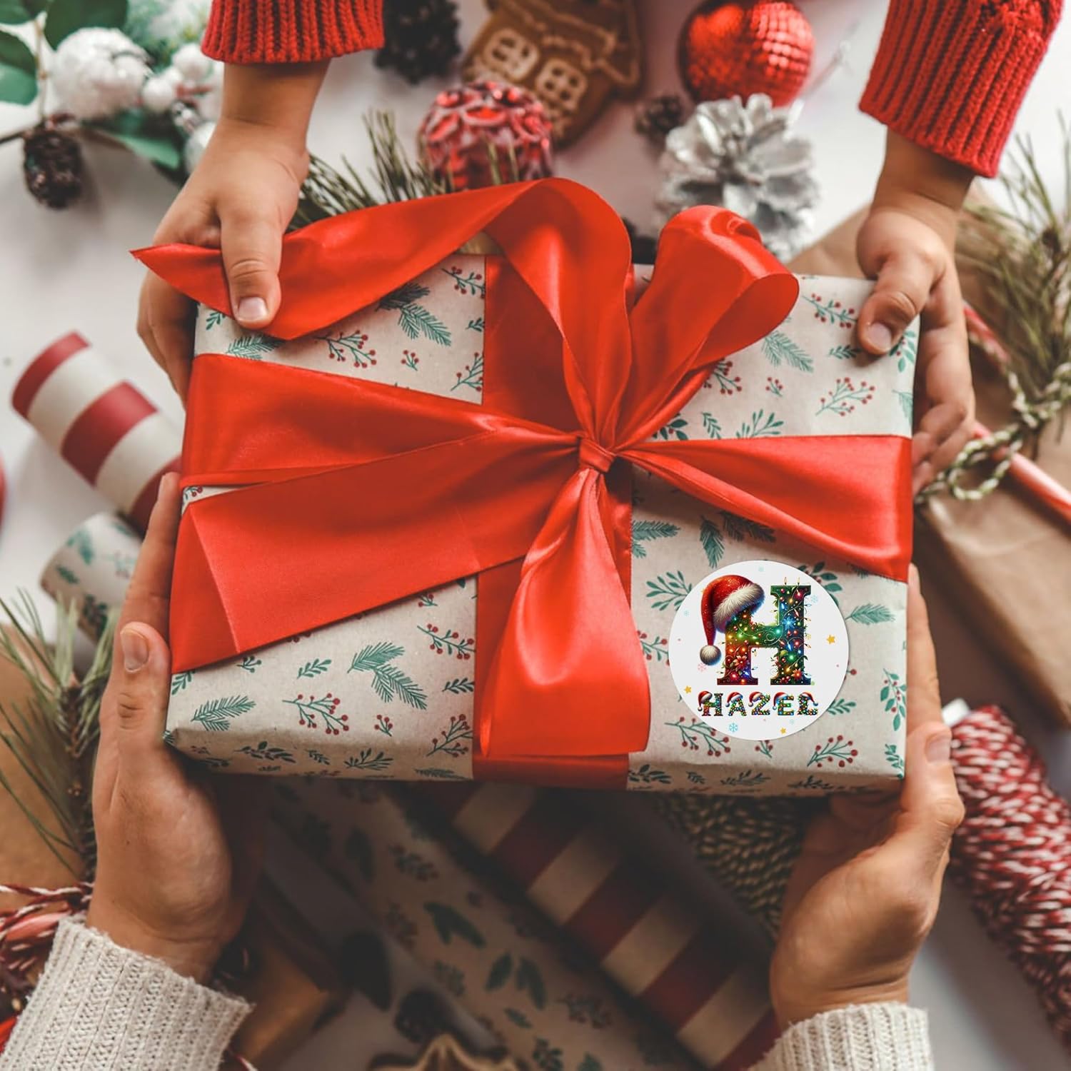 Personalized Christmas Stickers - Custom Name Waterproof Christmas Gift Tags for Gift Box Xmas Holiday Decorations Party Favors - 30 Stickers (Santa Hat Initial)
