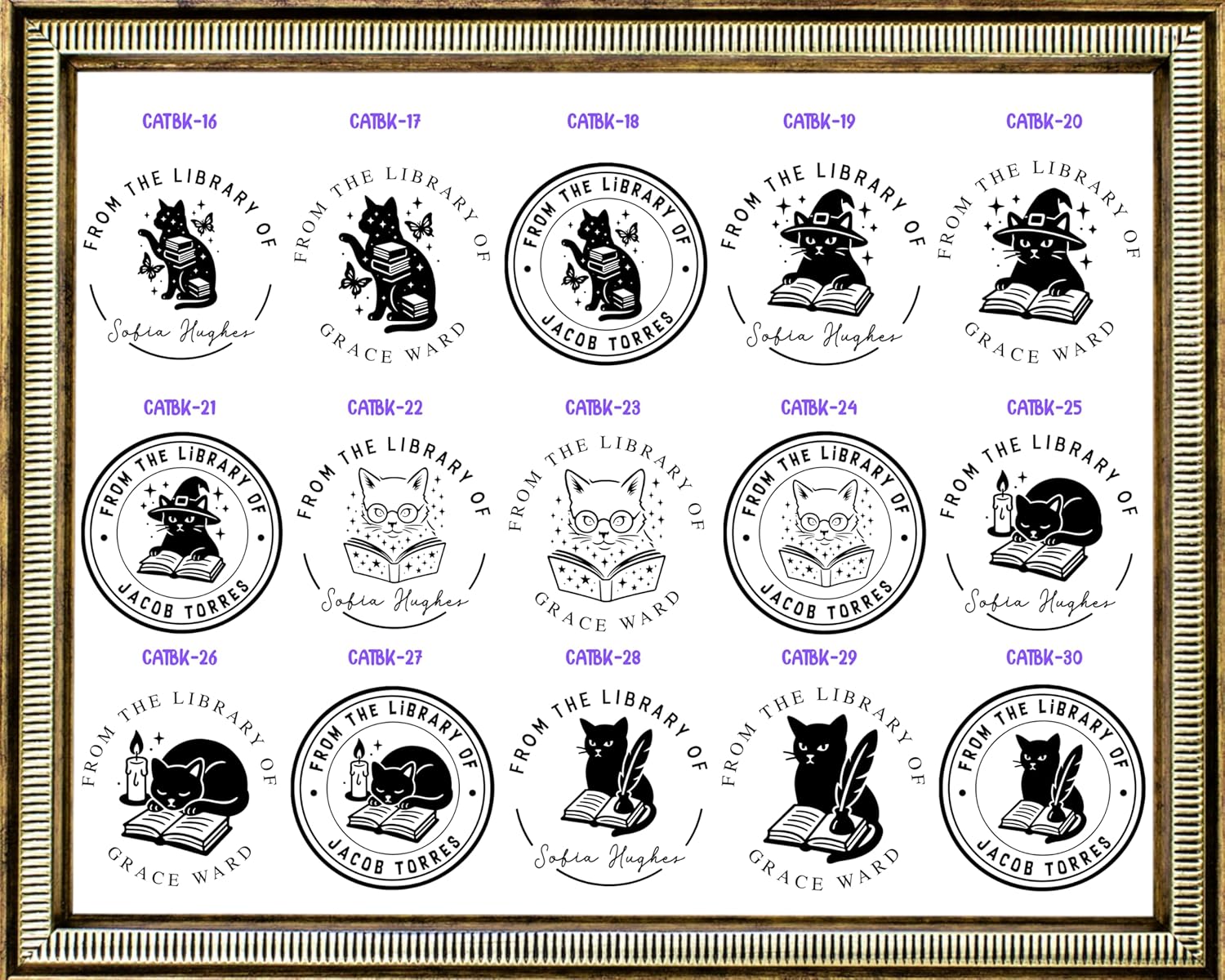 STAMPI Custom Book Embosser or Personalized Book Stamp – from The Library of Design | Swords, Cats, Dragon, Coffee & Floral Options | Gift for Book Lovers & Readers (Cat Set)
